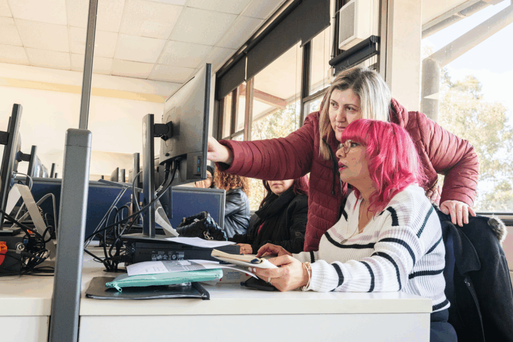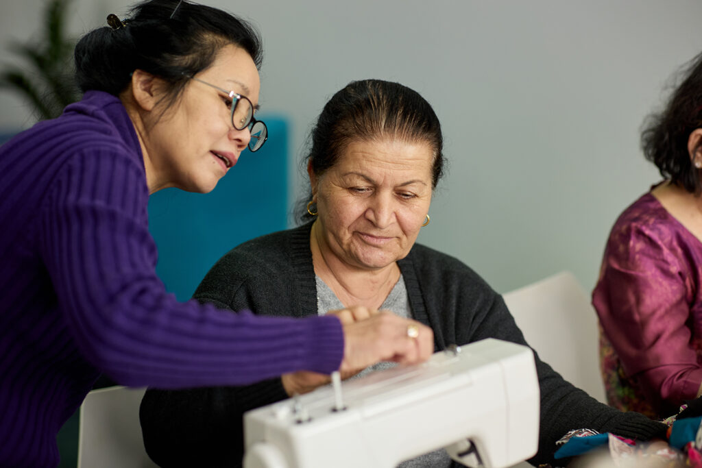 We offer a variety of workshops that help community members build skills and make social connections. These include digital skills training, English conversation classes, and our sewing group.